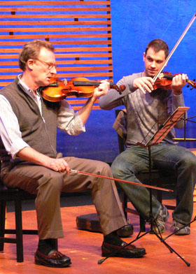 When the Bradley Quartet arrive in New York for a concert honoring their ten years together, tension builds as their jealousies and frustrations rise to the surface. The fragile harmony between James (Daniel Gerroll), Paul (Skip Pipo), Beth (Elizabeth Schmidt), and Hal (Peter Larney) is disrupted when Beth, the cellist, agrees to give music lessons to Jonny (Jeffrey Cannata), one of America's biggest rock stars. Musical and personal conflicts intertwine and implode, throwing the futures of the four musicians into doubt. Egos, loyalty and love are all put to the test in this witty, buoyant, and ultimately moving play of music and musicians.